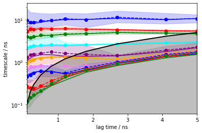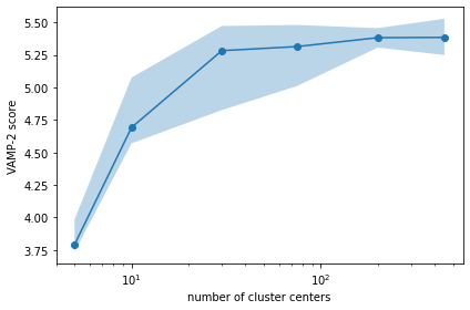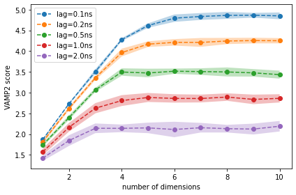 β οΈ Please note that the VAMP-2 score is not suitable to select the proper lag time as scores for different lag times are not comparable.