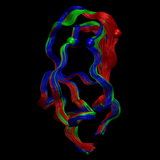 In this workshop we will be using the 1 millisecond trajectory of Bovine Pancreatic Trypsin Inhibitor (BPTI) generated by DE Shaw Research on the Anton Supercomputer [1]. In order to make the data size manageable we have saved only the Ca-coordinates and only every 10 ns, resulting in about 100000 frames.